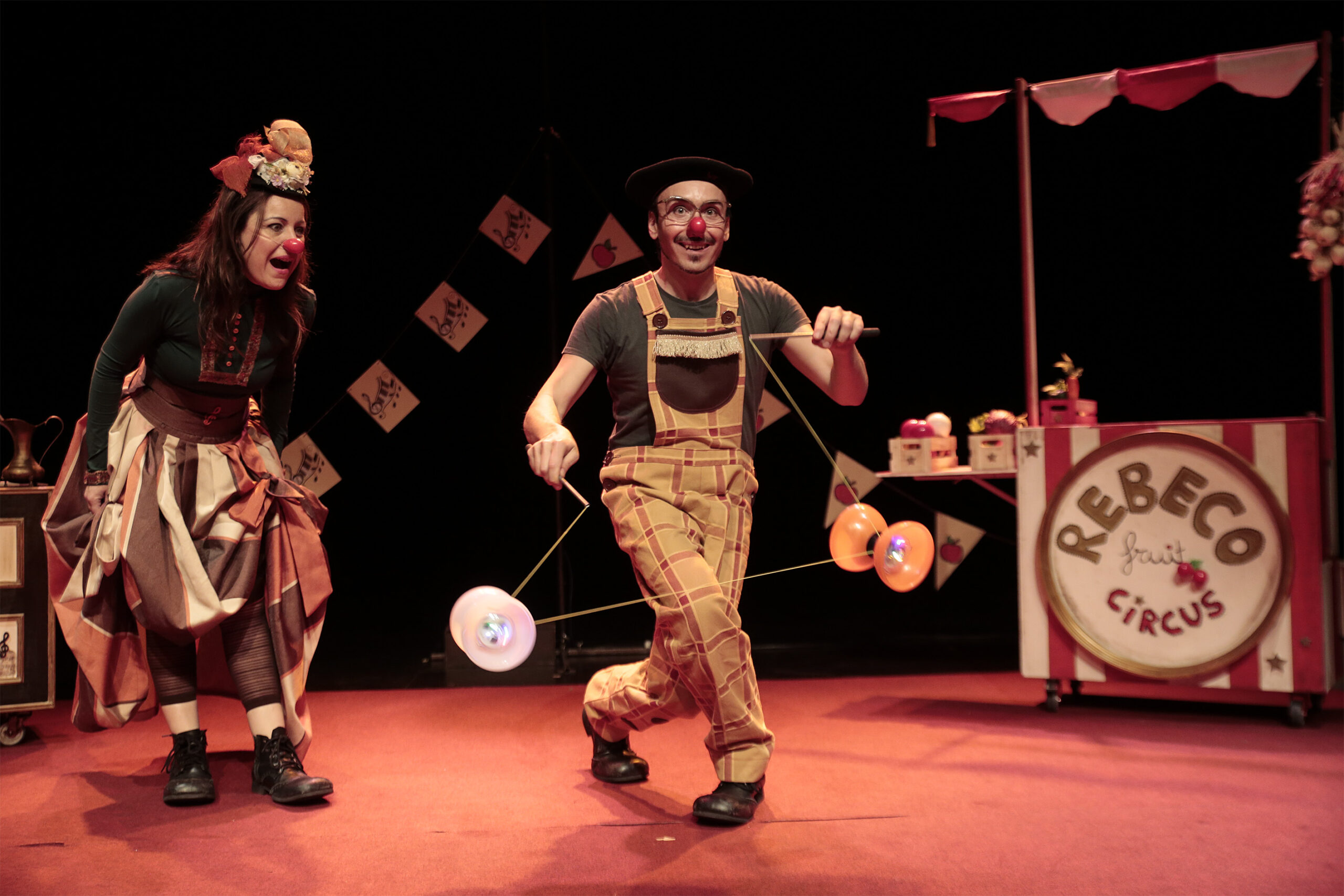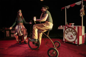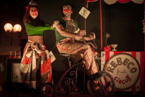 Ambos tienen una pasión. Ella, cantante soprano. Él, artista de circo Esta pasión les hace sentir, reír, soñar y, en definitiva, vivir. Rebeco es la torpeza, tierno patán, un personaje que vive por y para el Circo. Coral es belleza, un torrente musical.
